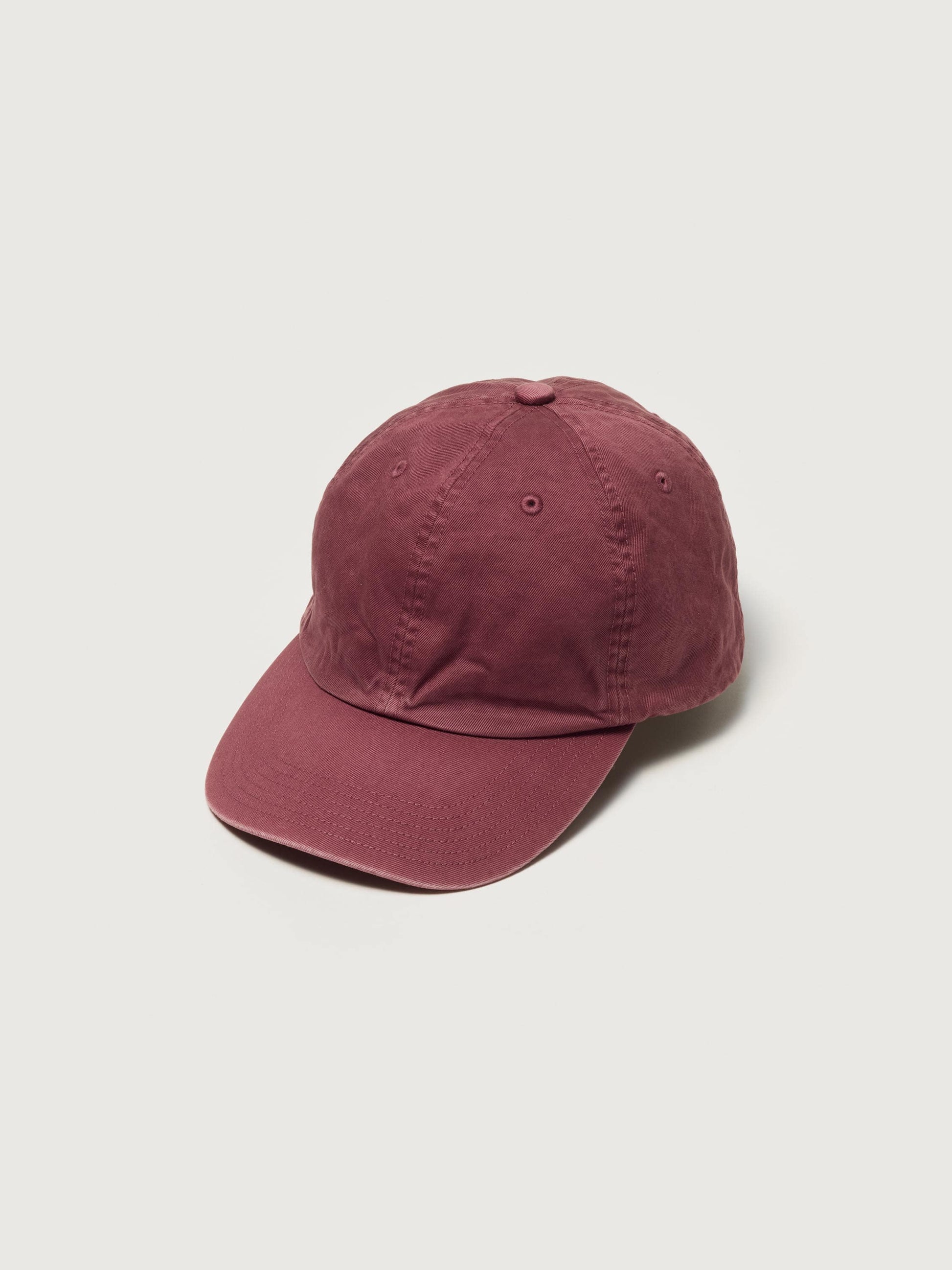KIJIMA TAKAYUKIに製作いただいたキャップで、25AWから継続して展開しているアイテムです。 素材には、エジプト産の超長綿「フィンクスコットン」を3本撚り合わせた糸を使用し、膨らみと滑らかさを兼ね備えたナチュラルな風合いを引き出しています。 製品染色後、職人の手作業によって丁寧に加工を施すことで、独特のムラ感のある色味と深みのある表情に仕上げています。 上質な原料と手仕事による仕上げが生み出す、奥行きのある素材感と品のある佇まいが魅力です。