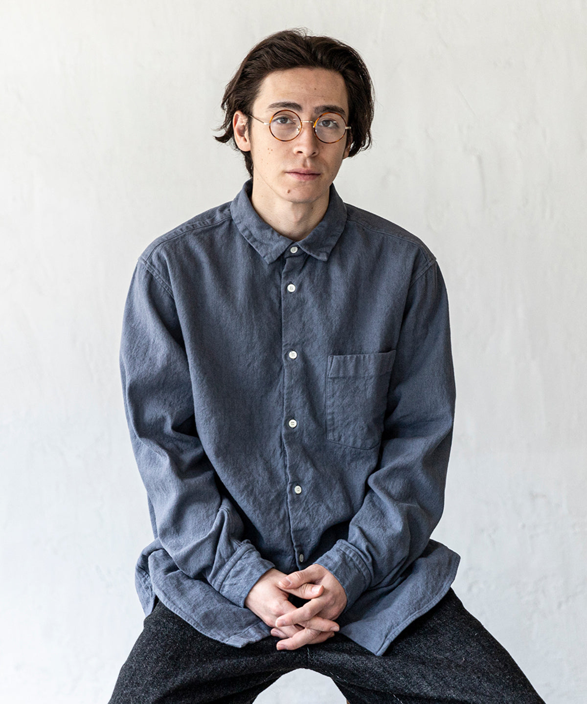 定番の3サイズのレギュラーカラーシャツとなっているため、年間を通してインナーとしてもアウターとしても使用頻度の高いアイテムにこの生地を落とし込む事によって、使い込む事で自分らしい服に育っていくアイテムをより体感していただけるアイテムに仕上がっており、一見、シンプルな定番アイテムに見えながら、長い目で向き合ってもらえると唯一無二な自分らしいアイテムに仕上がるシャツになります。