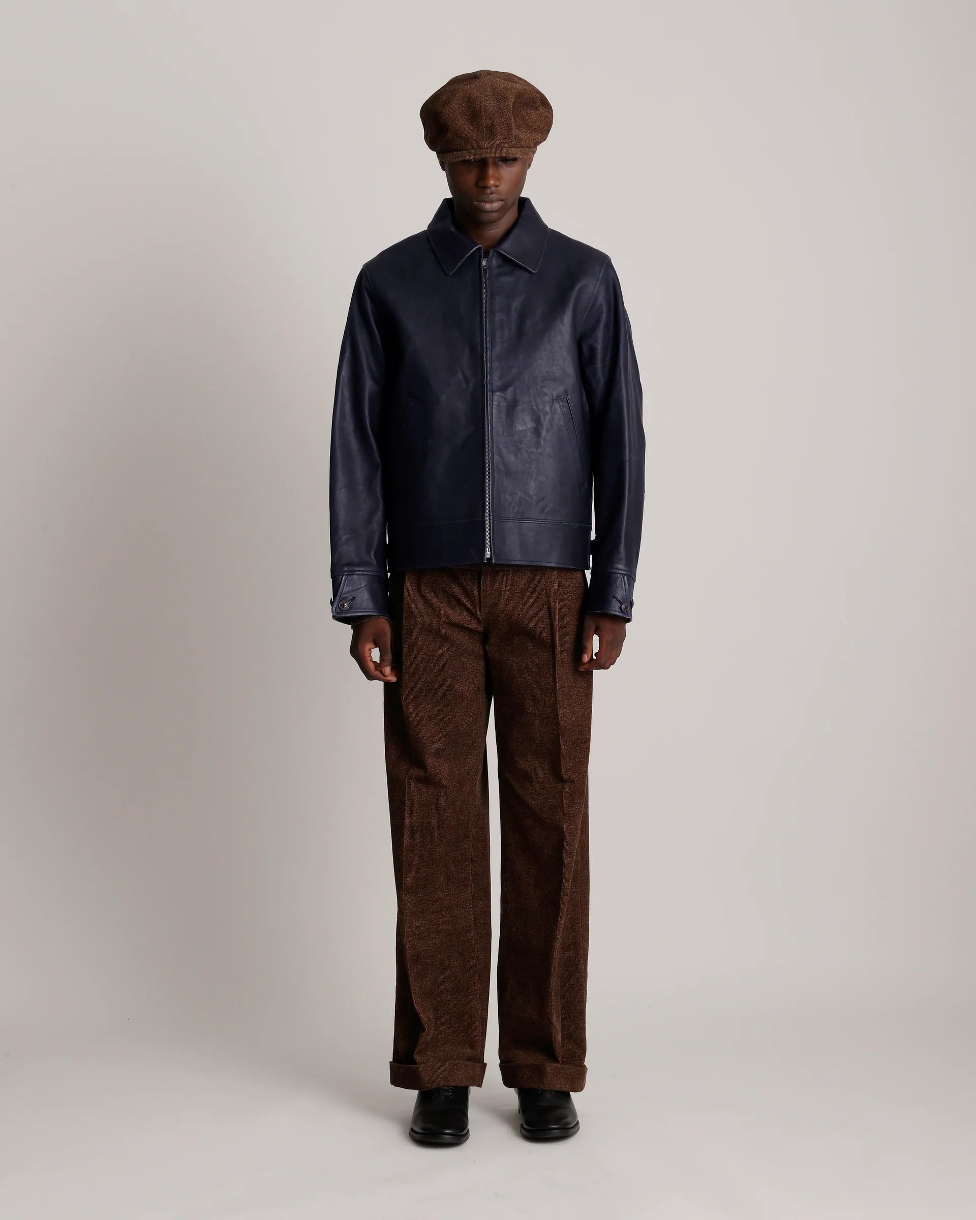 The leather jacket is based on an American leather jacket from the 1930s discovered in New York.